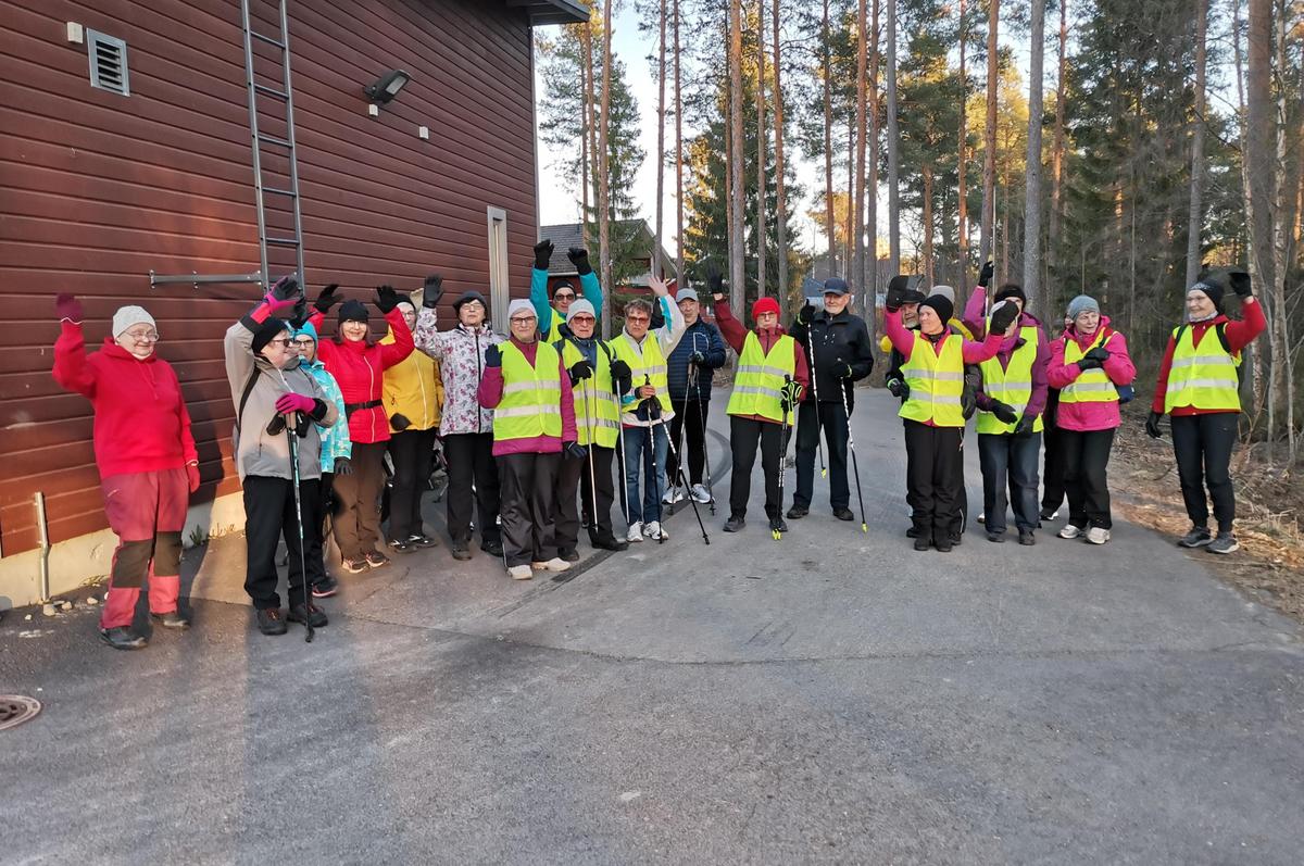 21.4.2026 tehtiin 4. tempaus LIIKE ON LÄÄKE -kampanjan merkeissä Liikuntapuiston maastossa. "Yöjuoksulle" lähdettiin klo 20 alkujumpan jälkeen. Edettiin raikkaassa kevätsäässä luontoa ihaillen, kuunnellen. Osa porukasta kävi Salmiperän esteettömällä laavulla nauttimassa eväitä ja kuuntelemassa linnun laulua. Kuun sirppikin loisti taivaalla paluumatkalla. Hyvillä mielin palattiin ja todettiin, että olipa taas mukavaa!