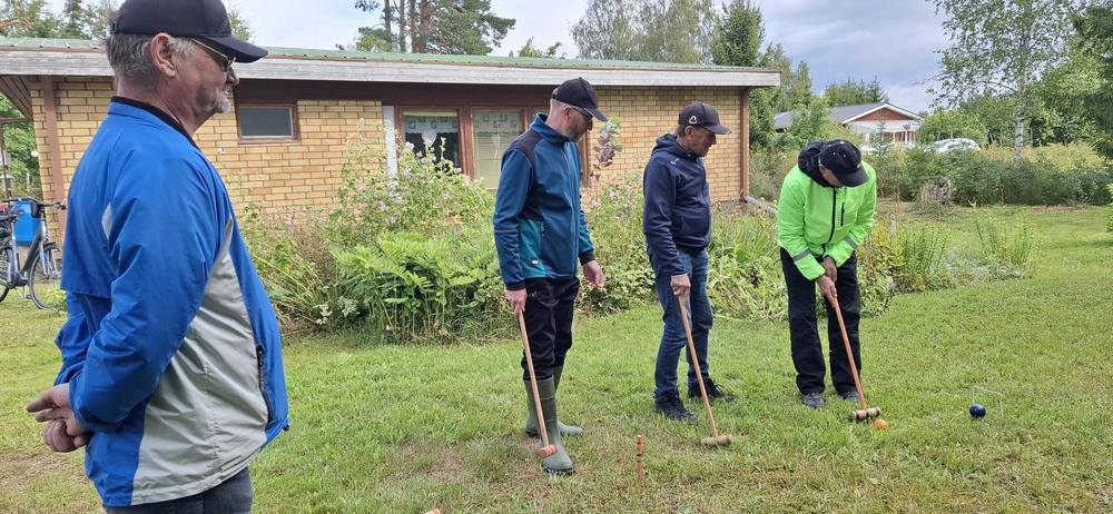 Pihalla kahviteltiin, paistettiin makkaraa, pelattiin bocciaa ja muuten vain seurusteltiin. Porukka oli tyytyväinen tapahtumaan, lienee ollut päivänsankarikin!
