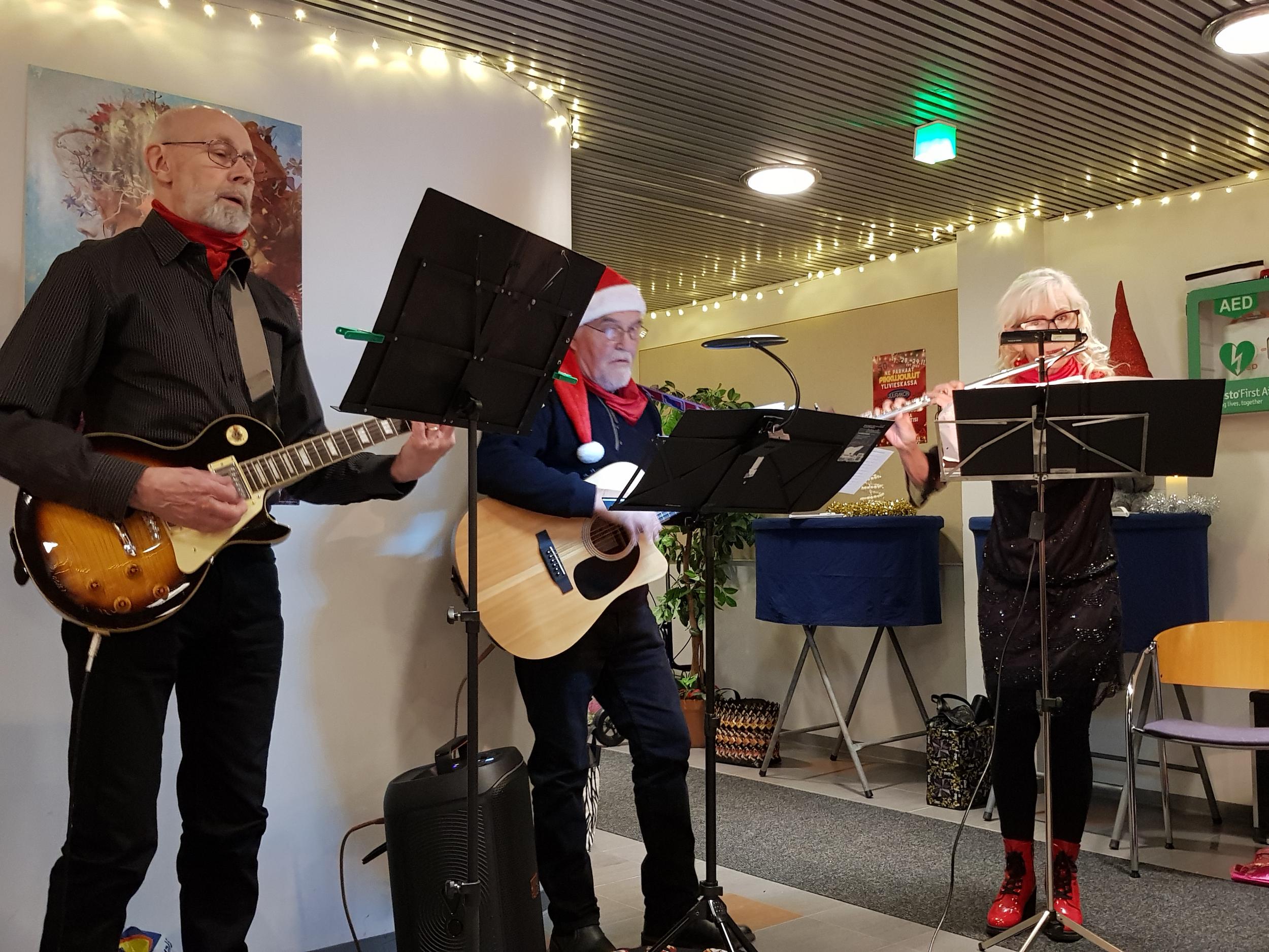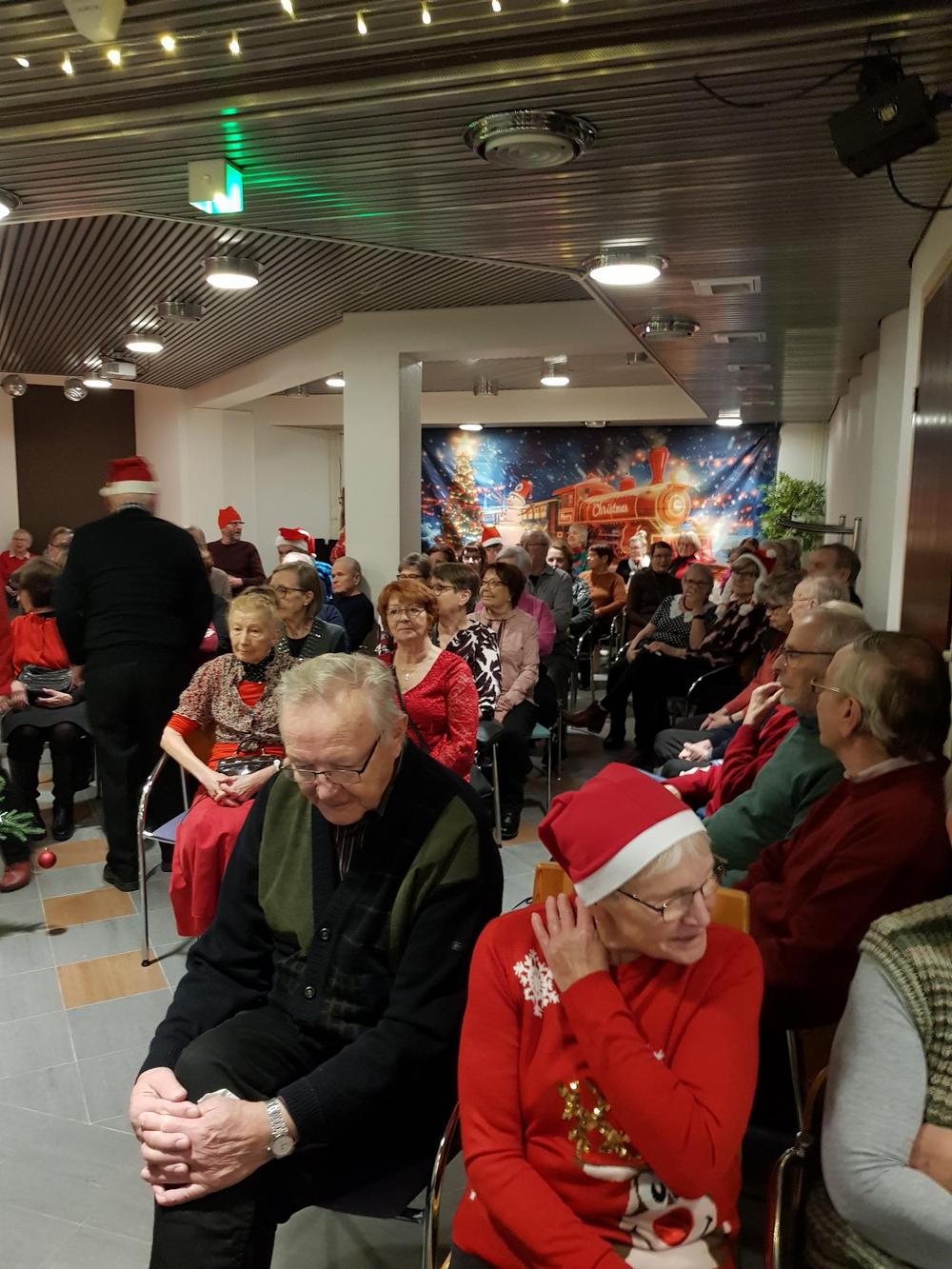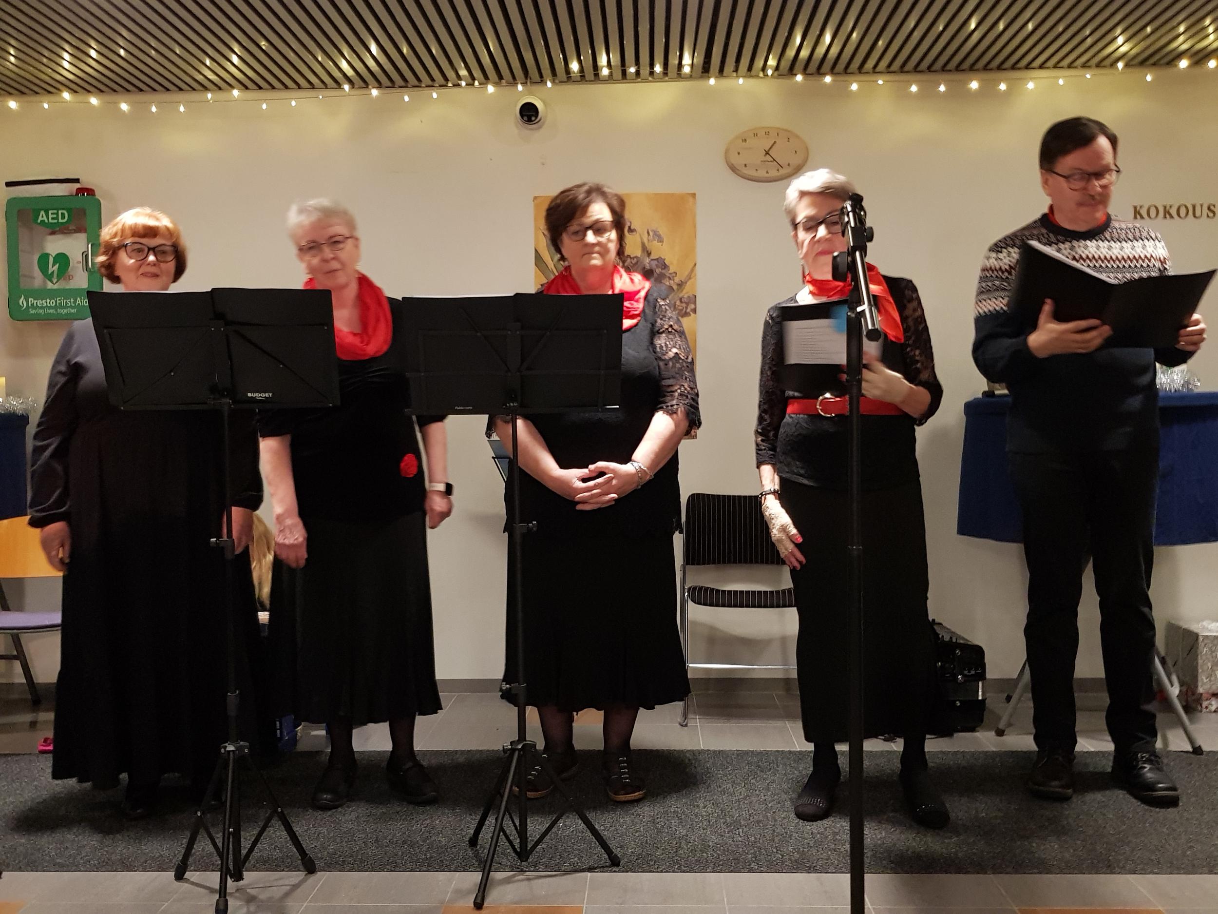 Esityksessä vuorottelivat Amandan ja Jouko Koskelan puhuttelevat runot sekä kauniit joululaulut. Ryhmässä oli yhteensä kahdeksan esiintyjää, sekä laulajia että soittajia. Juhlayleisö kuunteli hartaana ja ryhmä sai raikuvat aploodit! Arto Marjakankaan komea lauluääni jäi varmasti kaikkien mieleen...