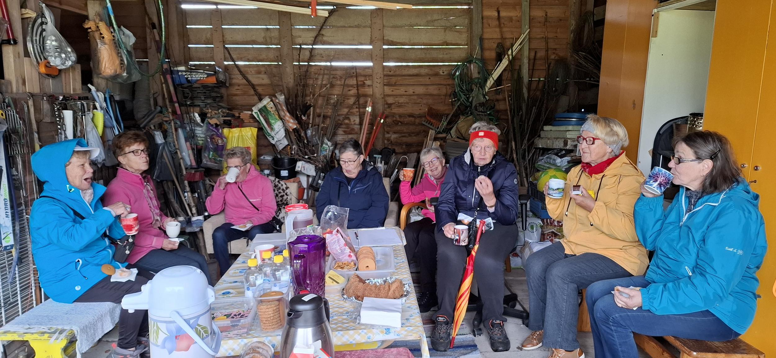 Pihalla kahviteltiin, paistettiin makkaraa, pelattiin bocciaa ja muuten vain seurusteltiin. Porukka oli tyytyväinen tapahtumaan, lienee ollut päivänsankarikin!